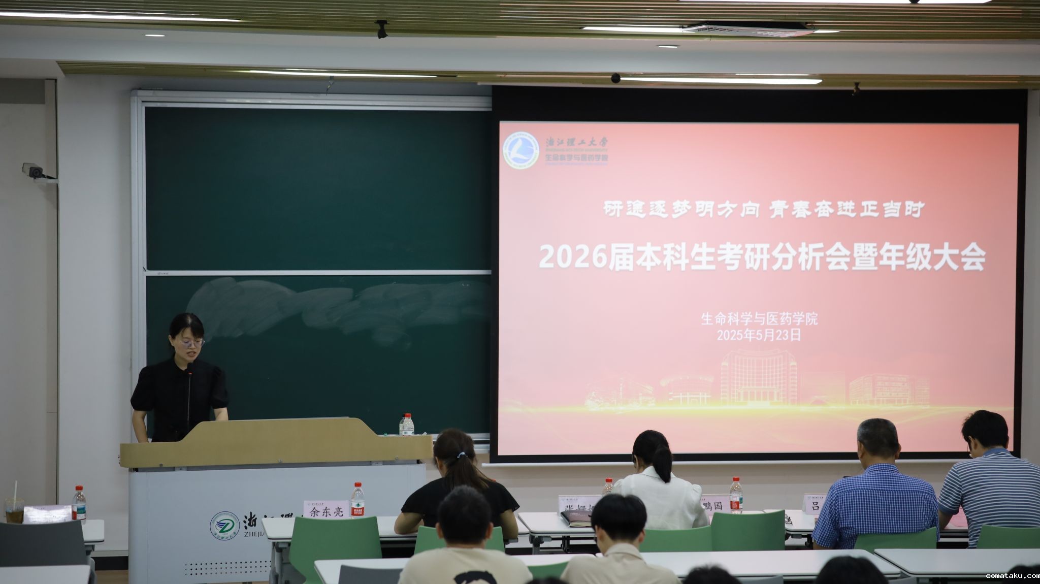 2025 年 5 月 23 日下午,生命科学与医药学院 2026 届本科生考研分析会暨年级大会在 2-N119 顺利召开。学院副院长夏鹏国、党委副书记张姗姗、吕正兵教授、班主任、辅导员、新通教育代表、往届考研上岸校友及 2022 级全体本科生参加会议。会议由辅导员王瑶瑶主持。本次大会旨在为同学们明晰考研方向、传授经验、答疑解惑,助力同学们在考研路上奋勇前行。
