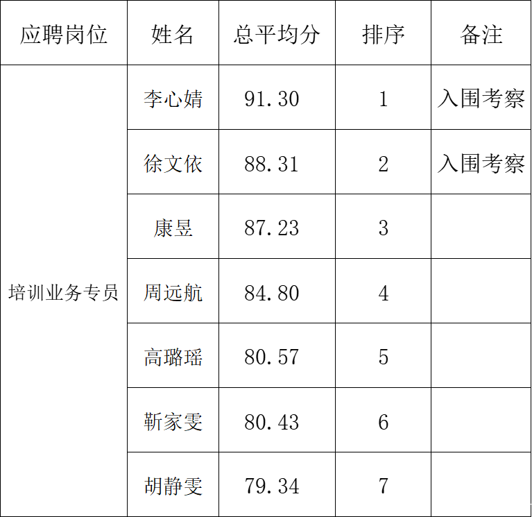 2025年AC米兰官方继续教育学院招聘劳务派遣B类工作人员面试通知》,经资格复审、面试,现将结果公布如下: